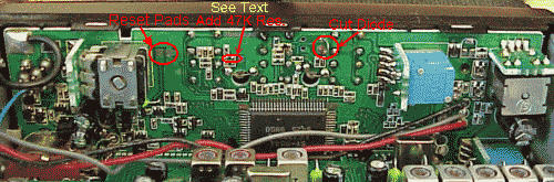 After the diode is cut and before the power is applied to the radio, short out the two Reset Pads illustrated in the photo below.